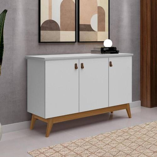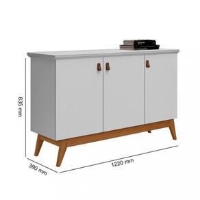 Características: 3 Portas 2 Prateleira Pés de madeira Puxador de couro Dobradiça metálica Estrutura em MDP Tampo MDF 25mm