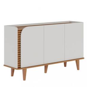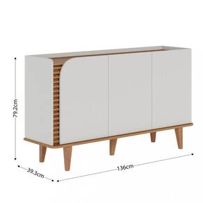 Características: Estrutura em MDP e MDF 3 Portas Detalhe ripado Bases e laterais com cantos curvos Pés em madeira maciça