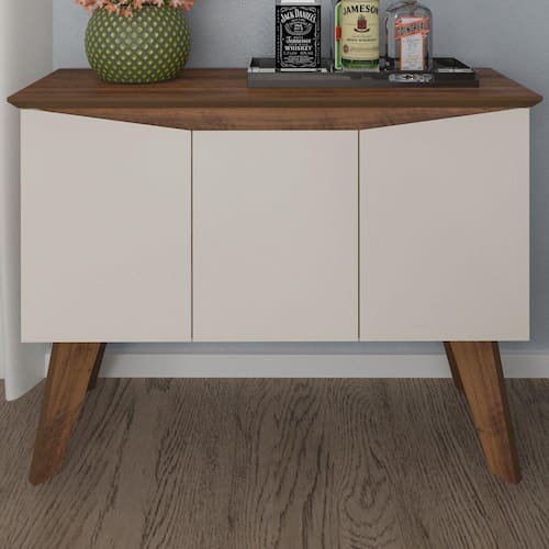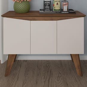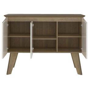 O(a) Balcão Buffet 3 Portas Oásis Pinho/Off White - Artely é produzido em MDF e MDP na escala de brilho Fosca com Textura, e possui um grau de dificuldade de montagem: Médio.