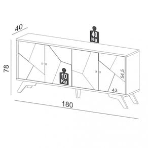 Dimensões: Altura: 78 cm Largura: 180 cm Profundidade: 40 cm Peso: 52 kg