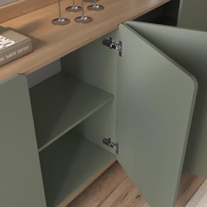 Disponível em diversas opções de cores, o Buffet John se adapta facilmente à sua decoração, trazendo harmonia e versatilidade para o espaço. Sua estrutura em MDF de 15mm, com fundos de 6mm, oferece resistência, enquanto o acabamento em BP protege contra arranhões e facilita a limpeza.