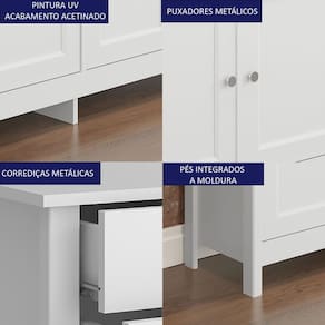 Peso Suportado: 40Kg no tampo e 5kg em cada gaveta