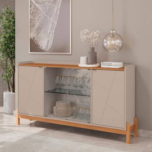 Com a mistura de elementos minimalistas e retrôs, o Buffet Bari é um móvel cheio de personalidade e indicado para deixar sua sala ainda mais charmosa. Possui quatro portas, sendo duas em vidro temperado de 4mm e as outras duas em MDF de 15mm, ambas com prateleiras internas. Estrutura de pés de madeira maciça. É ideal para armazenar aparelhos de jantar, travessas e copos. Seu tampo também pode ser utilizado como apoio para objetos decorativos, bebidas ou até mesmo como bancada para acomodar utensílios para servir drinques e petiscos.