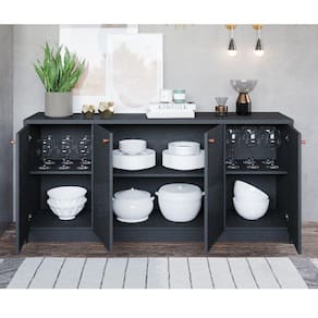 O Balcão Buffet Lia é o que você procura para completar sua sala! Com designer inovador ele irá agregar muito mais charme e requinte ao seu ambiente. Possui quatro portas com dobradiças metálicas. Amplo tampo para acomodar bebidas objetos de decoração taças etc. Estrutura elaborado em MDF garantindo com isso ainda mais qualidade e resistência ao produto.