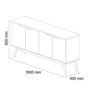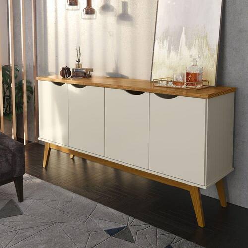 Características: Estrutura em MDP Tampo de 25 mm Pés em madeira maciça 4 Portas 2 Prateleiras Puxadores Cava Prateleiras organizadoras Fechamento suave das portas: Soft Close/ Slow Motion Versatilidade: pode ser cantinho do café ou balcão