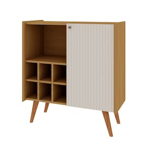 O(a) Balcão Buffet Adega 1 Porta Cinamomo/Off White - Genialflex é produzido em MDF e HDF na escala de brilho Fosco, e possui um grau de dificuldade de montagem: Médio.