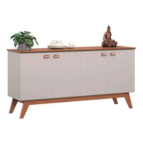O(a) Balcão Buffet Atlanta 4 Portas Off White/Nature - Tebarrot é produzido em MDF, MDP e Pinus na escala de brilho Semi-Brilho, e possui um grau de dificuldade de montagem: Médio.