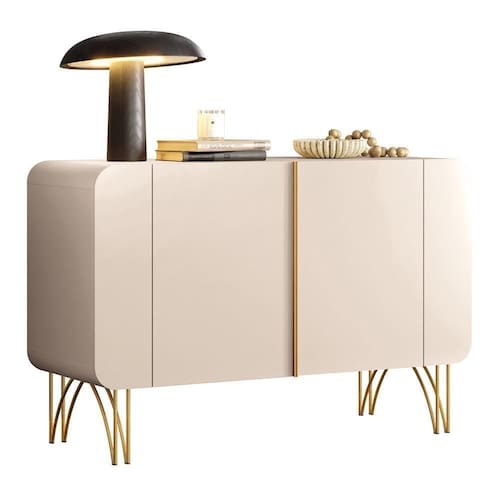 O Balcão Buffet Bevenuto 2 Portas combina sofisticação e praticidade. Com estrutura em MDF e MDP de 15mm e pintura UV, ele garante durabilidade e um acabamento impecável. Suas portas com cantos arredondados e dobradiças metálicas com amortecimento oferecem um toque de elegante, enquanto os puxadores em alumínio com acabamento dourado complementam o design refinado. Internamente, o aparador conta com 2 prateleiras de MDF para melhor organização. Apoiado sobre pés em aço maciço 3/8, com um sutil toque dourado, o Buffet não apenas encanta visualmente, mas também se destaca pela durabilidade.