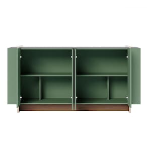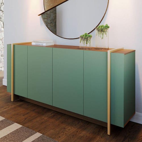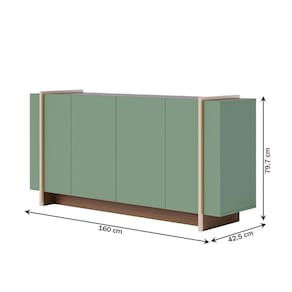 O(a) Balcão Buffet Copacabana 4 Portas 2 Prateleiras Hortelã/Amêndoa - Colibri é produzido em MDP na escala de brilho Fosco, e possui um grau de dificuldade de montagem: Médio.