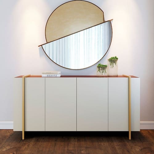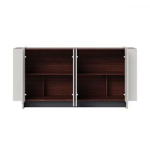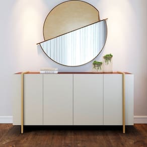 O(a) Balcão Buffet Copacabana 4 Portas 2 Prateleiras Off White/Nogueira/Dourado - Colibri é produzido em MDP na escala de brilho Fosco, e possui um grau de dificuldade de montagem: Médio.