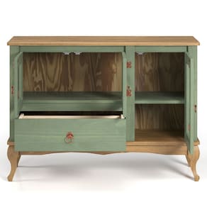 A linha Olive é inspirada nos vilarejos cercados por oliveiras e parreiras, nas casas de campo, no azeite de oliva, na culinária e na mesa farta. São móveis produzidos artesanalmente a partir de madeira maciça de reflorestamento, com pés trabalhados no estilo Luis XV, dobradiças e puxadores em metal na cor cobre. Assim como as olivas, esta linha está disponível nas cores verde, preta e branca.