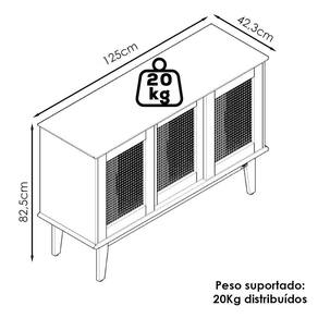 Modelo: Balcao Buffet Detroit 3 Portas Correr 125 cm Tebar
