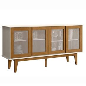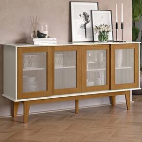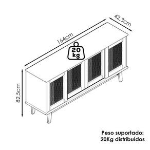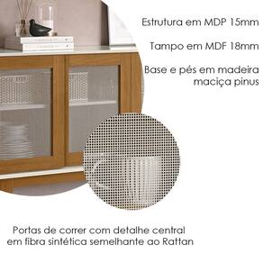 Balcão Buffet projetado para transformar seu ambiente com praticidade e estilo. Possui 164 cm de largura, estrutura em MDP de 15 mm e tampo em MDF de 18 mm. Sua base e pés são confeccionados em madeira maciça de pinus, proporcionando maior resistência e durabilidade. Com acabamento em pintura semibrilho, o móvel conta com 4 portas de correr com detalhe central em fibra sintética semelhante ao Rattan, além de prateleiras e divisórias internas que facilitam a organização. Este móvel chegará em sua casa separado em 01 volume.