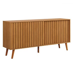 O(a) Balcão Buffet Duna 2 Portas Ripado Natural - Tebarrot é produzido em MDF e MDP na escala de brilho Semi-Brilho, e possui um grau de dificuldade de montagem: Médio.