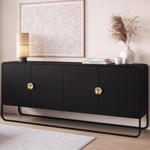 Conjunto de Buffet e Aparador com design orgânico e contemporâneo, ideal para compor salas de jantar com funcionalidade e estilo. Estrutura em MDP 15 mm, cantoneiras em MDF e acabamento em pintura BP. Possui 4 portas com dobradiças metálicas, 2 gavetas com corrediças telescópicas, prateleiras internas e externas, puxadores em poliestireno, pés em metal e sapatas plásticas que protegem o piso contra riscos. Produto entregue em 02 volumes.