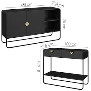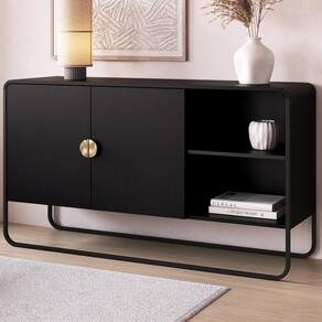 MDP | MDF | MetalConjunto de Buffet e Aparador que combinam design orgânico e contemporâneo com a praticidade para o dia a dia. Estrutura em MDP 15mm (cantoneiras em MDF) e acabamento em pintura BP. Conta com 2 portas com dobradiças metálicas e com 2 gavetas com corrediças telescópicas, prateleiras internas e externas, puxadores em poliestireno (plástico), pés em metal, além de sapatas plásticas que protegem o piso contra riscos. Produto será entregue em 02 volumes.