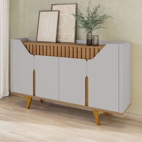 O(a) Balcão Buffet Emerald 4 Portas Ripado Off White/Cinamomo - Pnr Móveis é produzido em MDF na escala de brilho Brilhante e Fosco, e possui um grau de dificuldade de montagem: Médio.