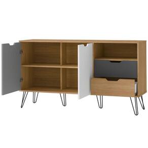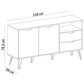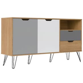 O(a) Balcão Buffet Estocolmo 2 Portas 2 Gavetas Carvalho/Grafite/Branco/Prata - Artely é produzido em MDP na escala de brilho Fosca com Textura, e possui um grau de dificuldade de montagem: Médio.