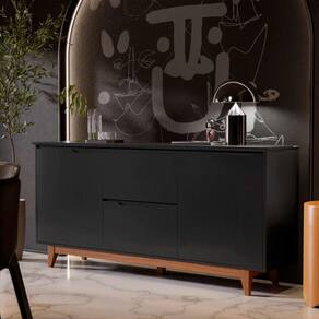 Balcão Buffet Flow 2 Portas 2 Gavetas 163cm Ej Móveis Preto Escolher um Buffet pode ser uma tarefa dificil, por este motivo estamos aqui para te ajudar lhe ndo a melhor opcao do mercado. Este Buffet foi fabricado com material de mdp/mdf de alta qualidade, proporcionando durabilidade e funcionalidade. Sua Pintura complementa sua estetica, adicionando um toque de elegancia e estilo a qualquer ambiente, tornando-o uma escolha ideal para quem busca sofisticacao e praticidade. O Buffet Flow contem 2 portas, 2 gavetas, 2 prateleiras. Com altura de 84 cm, largura de 163 cm e 40 cm de profundidade, e perfeito para ambientes de sala de jantar de todos os tamanhos. Caracteristicas: Marca: Ej Moveis Modelo: Flow Estrutura: MDP/MDF Portas: 2 Gavetas: 2 Prateleiras: 2
