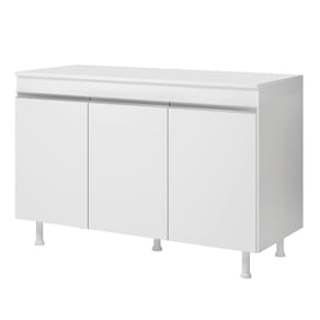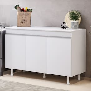 Construído com 100% de MDF, este balcão oferece durabilidade e resistência superiores. Suas três portas, equipadas com dobradiças metálicas de alta qualidade, garantem um acesso fácil e conveniente ao seu conteúdo, enquanto os puxadores em alumínio adicionam um toque moderno e refinado.