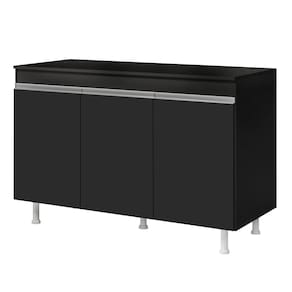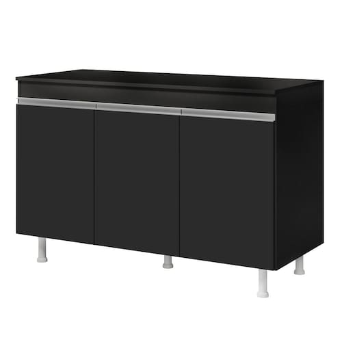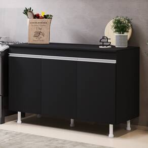 Construído com 100% de MDF, este balcão oferece durabilidade e resistência superiores. Suas três portas, equipadas com dobradiças metálicas de alta qualidade, garantem um acesso fácil e conveniente ao seu conteúdo, enquanto os puxadores em alumínio adicionam um toque moderno e refinado.