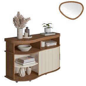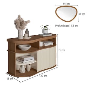 O(a) Balcão Buffet Magum 1 Porta com Espelho Orgânico Cinamomo/Off White - Pnr Móveis é produzido em MDF, MDP e Tamburato na escala de brilho Fosca com Textura, e possui um grau de dificuldade de montagem: Médio.