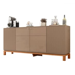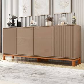 O(a) Balcão Buffet Mondriant 4 Portas Ripado 3d Sued/Freijó - Caemmun é produzido em MDP na escala de brilho Fosco, e possui um grau de dificuldade de montagem: Médio.