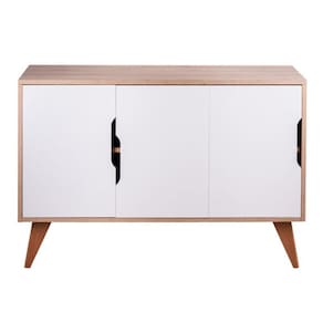 Balcão Buffet Retrô com 3 Portas Carvalho e Branco