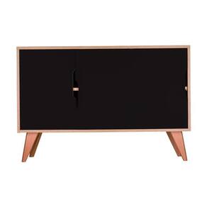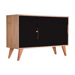 Balcão Buffet Retrô com 3 Portas Carvalho e Preto - Bege