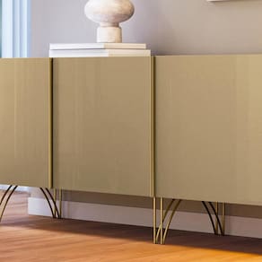 O Balcão Buffet Saluti exibe uma elegância atemporal com seus cantos arredondados e generoso espaço interno, transformando qualquer ambiente em um cenário de refinamento. Suas quatro portas, articuladas lateralmente, são adornadas por puxadores em alumínio com delicado acabamento dourado, adicionando um toque de sofisticação. A experiência de utilização é aprimorada pelo sistema de amortecimento nas portas, garantindo um fechamento suave e silencioso, como um sussurro de elegância. Apoiado sobre pés em aço maciço 3/8, com um sutil toque dourado, o Buffet não apenas encanta visualmente, mas também se destaca pela durabilidade. Produzido com a excelência do MDF e MDP de 15mm, este móvel é mais do que uma peça funcional, é uma expressão de requinte. O Buffet Saluti transcende a utilidade prática e torna-se uma obra de arte, elevando o ambiente a um patamar de beleza e harmonia.
