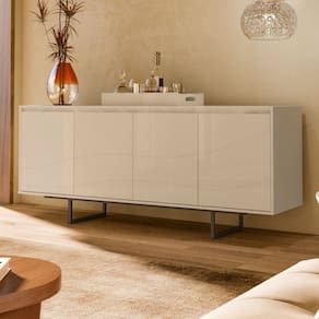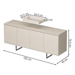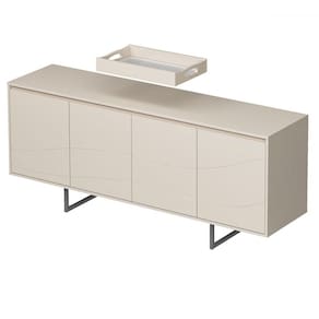 O(a) Balcão Buffet Serra do Mar 4 Portas 3 Prateleiras com Bandeja Off White - Artely Móveis é produzido em MDF e MDP na escala de brilho Fosca com Textura, e possui um grau de dificuldade de montagem: Médio.
