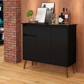 Balcão Buffet Veneza 3 Portas 1 Gaveta 93cm Ej Móveis Preto