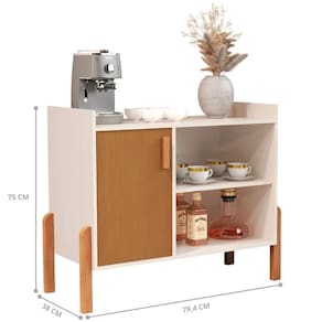 Contém uma portas com dobradiças e uma prateleira. Oferecendo essas funções todas, o seu Cantinho do Café pode ser na cozinha, na sala de jantar ou até mesmo no seu local de trabalho.