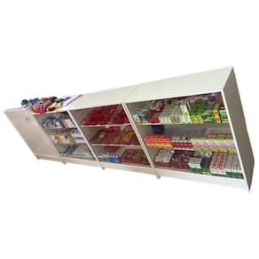Detalhe Técnico: Este balcão é composto por 4 módulos: 1 balcão caixa 3 Balcão expositor Cada módulo tem a medida de 100x87x38mts, com a largura total 3,48mts. Fabricado 100% em MDF, com prateleiras internas e vidro frontal em três módulos. Acabamento de qualidade e excelente aproveitamento de espaço.