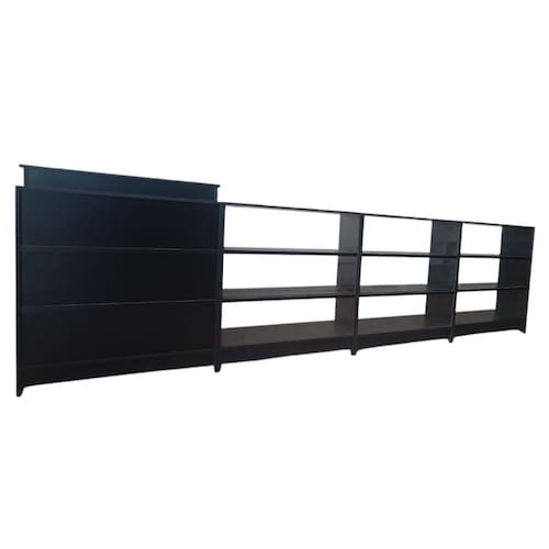 Detalhe Técnico: Este balcão é composto por 4 módulos: 1 balcão caixa 3 Balcão expositor Cada módulo tem a medida de 100x87x38mts, com a largura total 3,48mts. Fabricado 100% em MDF, com prateleiras internas e vidro frontal em três módulos. Acabamento de qualidade e excelente aproveitamento de espaço.