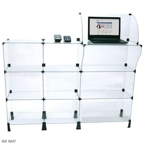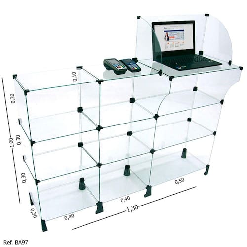 Balcão caixa modulado em vidro temperado de 4mm no tamanho de 1,30 x 1,00 x 0,30. Ideal para atendimento e exposição de produtos!