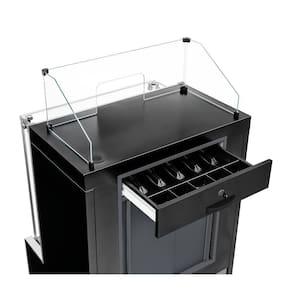 Balcão Caixa Mpxa075r Gelopar Aurora Caixa 0,75mt Bivolt Preto Vitrine Balcão Neutra Caixa Linha Aurora 0,75MT MPXA075R Bivolt Gelopar. Atendimento a clientes. Exposição de produtos em condição ambiente. Revestimento Externo: Gabinete: Monobloco em aço pré-pintado. Iluminação LED (interna), com interruptor. Portas deslizantes em vidro temperado com serigrafia. Prateleira Vidro. 2 níveis em vidros temperados. Pés niveladores. Guichê e vidros temperados. Gaveta com fechadura, porta cédulas e divisórias. Tampo com recorte para cabos. Produto destinado para uso comercial. PESO: 44,8Kg. CONSUMO (LED): 0,0012 kWh/dia. DIMENSÕES EXTERNAS (CxAxL): 74x137,5x63,2cm. Equipamento certificado conforme Portaria Inmetro n 371/2009. Vitrine Balcão Neutra Caixa Linha Aurora 0,75MT MPXA075R Bivolt Gelopar é na Atau. Marca - Gelopar Modelo - MPXA075R Frente - 74cm Altura - 1,37m/1.15m Profundidade - 63,2cm Peso - 44,8Kg