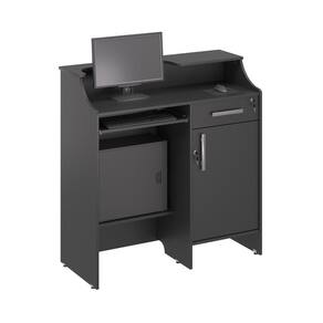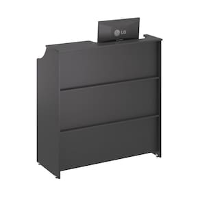 Balcao Caixa Stamp Com Gaveta Preto Onix O Balcão proporciona conforto e versatilidade no atendimento ao cliente, e traz também a função caixa Em MDP BP ou EUCAPRINT 15 mm, acabamento de bordas em ABS.