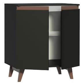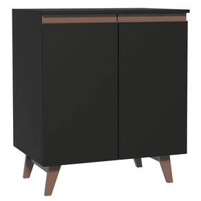 Além de puxadores embutidos em alumínio na coloração marrom e dobradiças metálicas, possui também pés em madeira muito bonitos e resistentes.