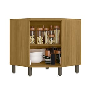 Características: Portas: 1 porta de giro -bater- Prateleira: 1 prateleira fixa; 5kg Dobradiças: 02, metálicas 35mm Pés: 5 pés reguláveis, PVC 17cm Puxador: 1 puxador bronze em polímero Material: Estrutura MDP Perffect Touch 15mm Acabamento e revestimento: revestimento BP Montagem: parafusos, pregos, cavilhas.