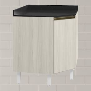 Balcão com Tampo Canto Obliquo, funcional e compacto para composições modernas. Com 74,7cm de largura, fabricado 100% em MDF, possui estrutura e tampo de 15mm, com forro de 3mm. Conta com 1 prateleira interna e 1 porta com puxador em perfil alumínio e dobradiças de 35mm com amortecedores. Os 5 pés possuem altura de 15,5cm com regulagem adicional de 1,5cm, garantindo estabilidade em qualquer piso. Este móvel chegará em sua casa separado em 3 volumes.