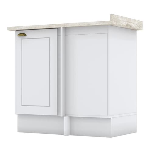 ESPECIFICAÇÕES: • Estrutura 100% MDF • Pintura UV • 1 Porta • Dobradiças de 35mm com amortecimento • Puxadores em zamac ouro velho • Usinagem em baixo relevo • Altura do balcão sem o pé: 67,5 • Opção de instalação sem pés, suspensa • Montagem pode ser realizada do lado esquerdo ou direito • Amplo espaço • Acompanha tampo *O módulo canto reto fica 10cm afastado da parede e deve-se contar largura total de 94cm para projetos