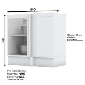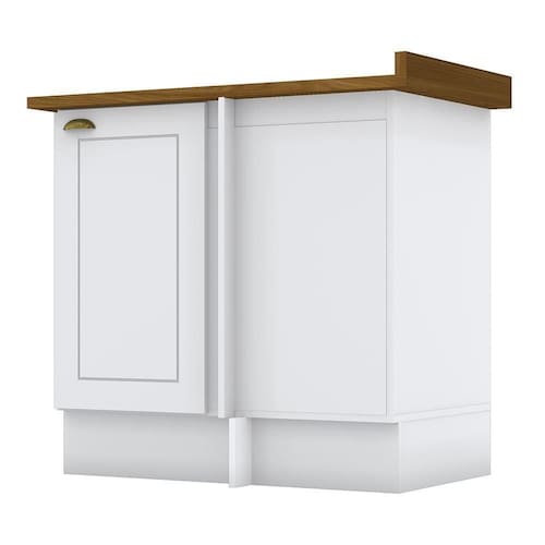Balcão Canto Reto 1 Porta Americana Branco Com Tampo Nature - Móveis Henn Branco/nature Balcão Canto Reto 1 Porta Americana com Tampo - Móveis Henn O Balcão Canto Reto Americana é ideal para você que busca um ambiente com estilo e beleza contemporânea, conta com amplo espaço interno auxiliando na organização da sua cozinha. O Balcão Canto Reto faz parte da linha de cozinha modulada Americana da Henn com mais de 15 módulos que possibilitam criar o projeto de cozinha dos seus sonhos. ESPECIFICAÇÕES: - Estrutura 100% MDF - Pintura UV - 1 Porta - Dobradiças de 35mm com amortecimento - Puxadores em zamac ouro velho - Usinagem em baixo relevo - Altura do balcão sem o pé: 67,5 - Opção de instalação sem pés, suspensa - Montagem pode ser realizada do lado esquerdo ou direito - Amplo espaço - Acompanha tampo *O módulo canto reto fica 10cm afastado da parede e deve-se contar largura total de 94cm para projetos