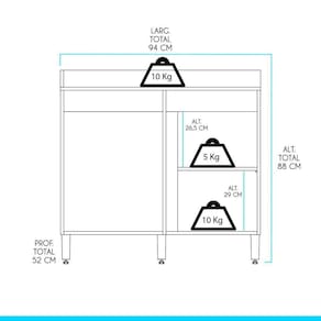 Dimensoes: Altura: 88 cm Largura: 94 cm Profundidade: 52 cm Peso: 30 kg