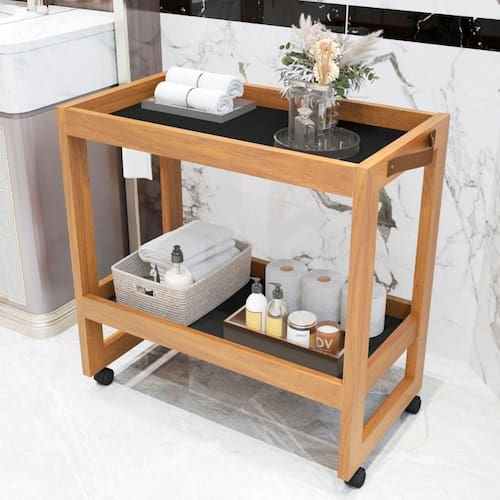Possui 2 prateleira e 4 rodízios facilitando o manuseio do produto.