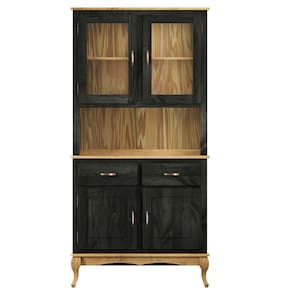 - Acabamento: Cera na cor preto oliva com veios e nós aparentes.