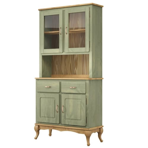 - Acabamento: Cera na cor verde oliva com veios e nós aparentes.