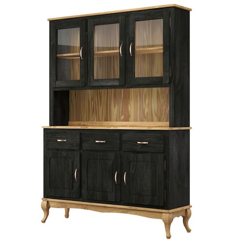 - Acabamento: Cera na cor preto oliva com veios e nós aparentes.