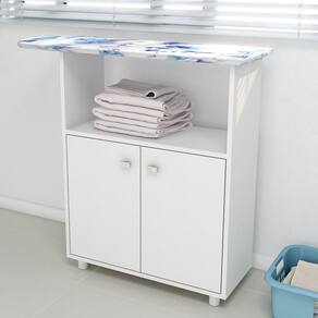 Esse Balcão com tábua de passar é sinônimo de funcionalidade, pois conta com detalhes que ajudam muito no dia a dia. Ele possui 2 portas de dobradiças metálicas com puxadores de plástico, prateleira interna e nicho superior, ou seja, tem tudo que precisa para fazer diferença no cômodo! Ah, e ainda é fabricado em MDP com acabamento em pintura UV que agrega qualidade ao produto.