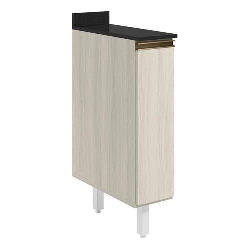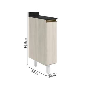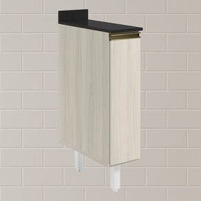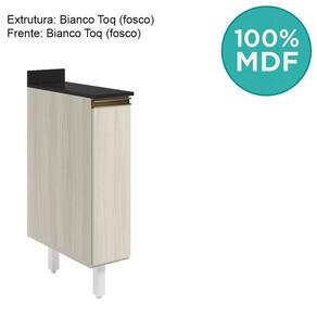 Balcão com tampo funcional e compacto para composições modernas. Com 20cm de largura, fabricado 100% em MDF, possui estrutura e tampo de 15mm, com forro de 3mm. Conta com 1 porta com dobradiças de 35mm com amortecedor, puxador em perfil alumínio e 1 prateleira interna. Os 2 pés possuem altura de 15,5cm com regulagem adicional de 1,5cm, garantindo estabilidade em qualquer piso. Este móvel chegará em sua casa separado em 3 volumes.